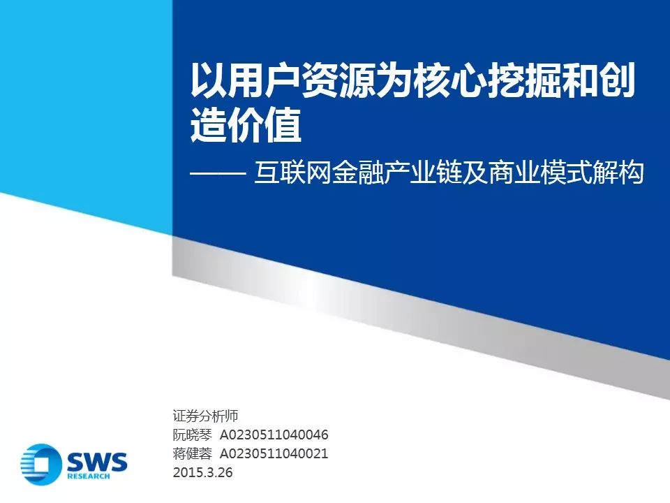 陪伴着“互联网+”上升为国家战略,互联网金融发达发展。互联网金融已经形成了信息—平台—账户的全财产链,贸易模式出现多元化。3月26日,申万宏源发展研究部发布了《以用户资源为核心发掘和创造代价——互联网金融财产链及贸易模式解构》研究陈诉!
