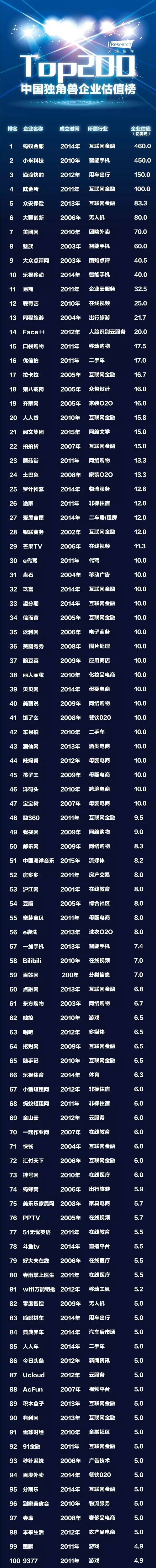 据相识,艾瑞咨询这份榜单是其根据公开报道的数据并团结估值模子核算得出的效果,统计范围为2012年7月——2015年7月这三年间完成融资且主业务务在中国大陆的初创企业。