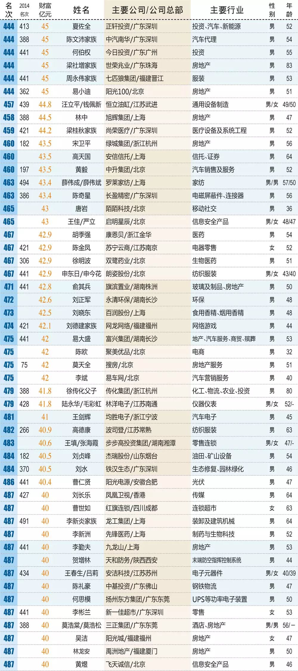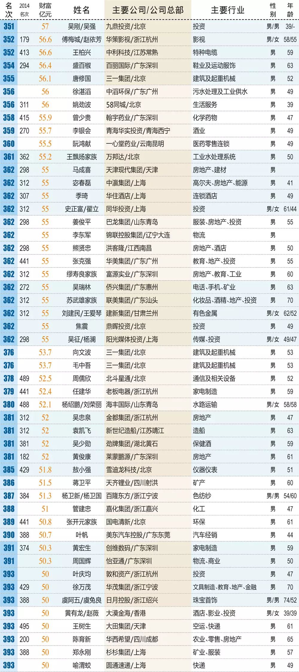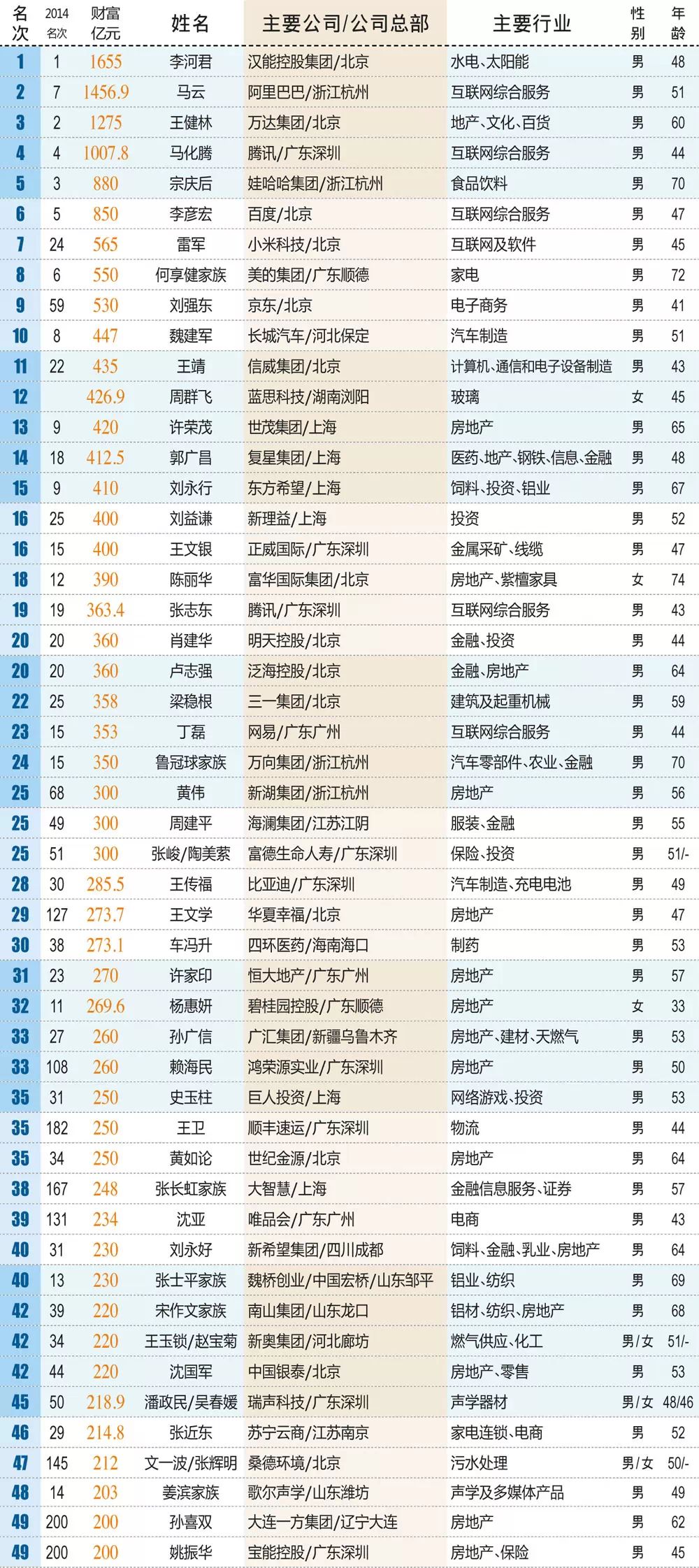 1 ~" C1 o0 \3 F% w: W& S2015新财产500富人榜榜单0 S. c4 S& M& {. _: V# V: Y