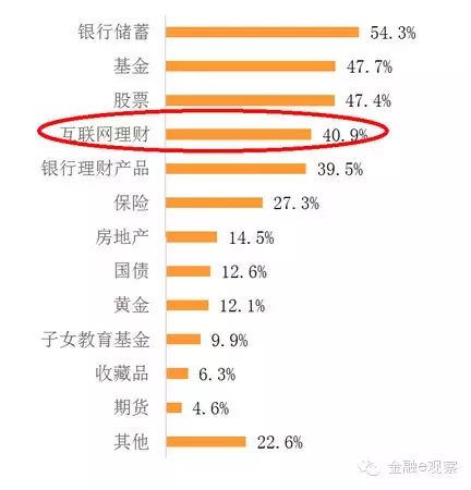 h' _6 ^: L7 B( F) x随着互联网理财灵敏发力,其排名已经攀升至第四名,使用率高出40%,开始与最传统的银行储备理财方式相抗衡,其市场潜力不可限量。别的,银行理产业品也是受访者最常用的理财方式之一,占比39.5%。别的,保险、房地产、国债、黄金也有一部门的受访者选择。% ^- G' Q% u N% V- S