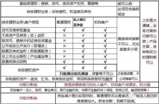 ①对银行理财业务资质区分综合类和根本类,前者将不能投资非标和权益类资产;