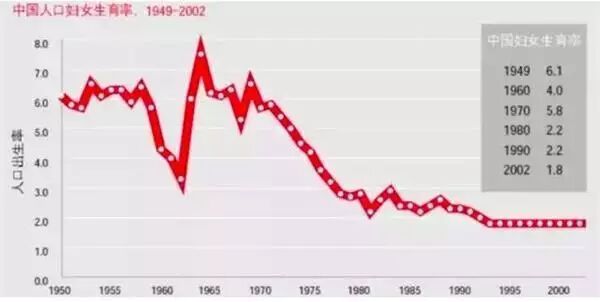 2 E% d* a: {+ e7 ]1 B- M(1)1950-1970生养率均值在6.0;(2)1970-1980生养率由6.0降为2.0;(3)1980-2002生养率由2.0痴钝降落,稳固在1.8.