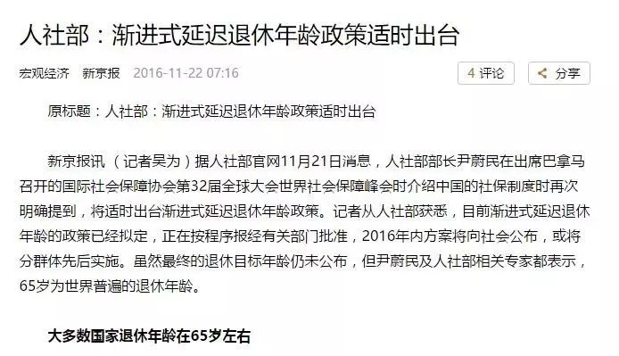 $ q) d/ G1 g7 g4 L8 p# b延长退休!这个话题官方和民间争议了很多年,实际上,当延长退休这一公共决议在人们开始讨论它的时间,就注定了将在将来的某一天成为实际。现在,人社部已经根本给出了延长退休的时间表:在我们的有生之年,男女或将同一将退休年事进步到至少65岁,也就是男性由现在60岁退休的底子上,延长5年,女性由现在50岁退休的底子上,延长15年。 嗯,在退休年事上,我们又一次实现了男女同等。