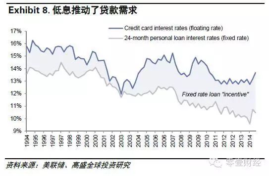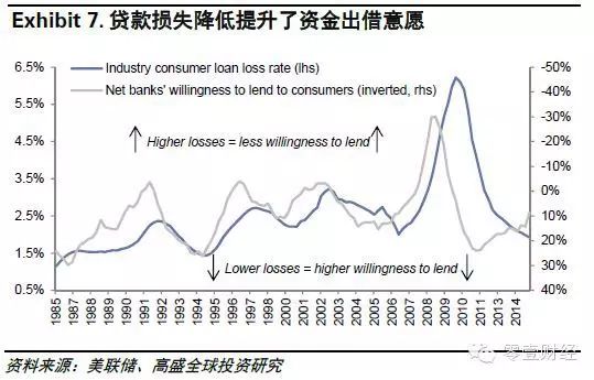 3、有利的宏观情况:处于汗青低点的利率和汗青相对低位的斲丧贷款违约率的共同作用也促进了信贷供给,由于投资者寻求更高受益资产,而且新进企业也对乞贷人的风险状态感到更为放心。3 p5 v) S4 l9 H1 ~3 a