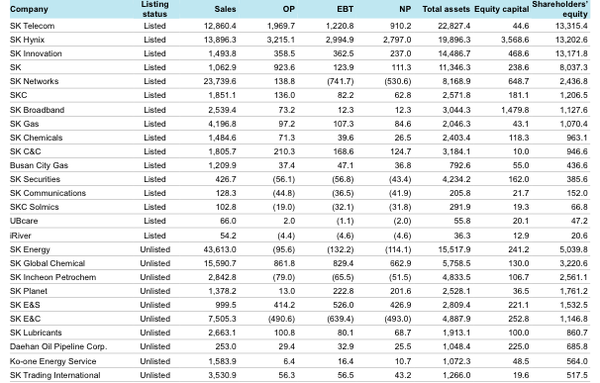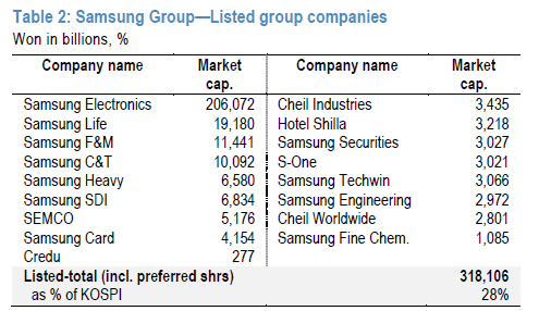 " W, X/ B) a4 e1 C$ I2 z4 q三星团体全部大企业的市值总和约3200亿美元(上图单元为韩圆)