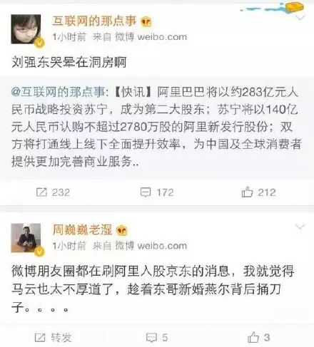 马云给刘强东的“新婚大礼”:阿里巴巴 283 亿入股苏宁云商成第二大股东!