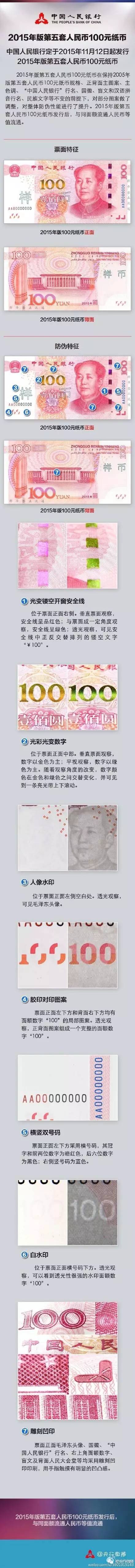 二、2015年版第五套人民币100元纸币发行后,与同面额流畅人民币等值流畅。为何发行?% ?9 K" j% p: w; O b0 x