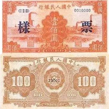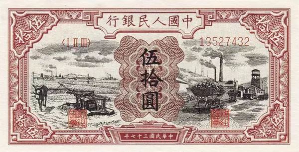 3 V- \# ^3 [8 P( _ 第一套人民币1948年12月1日1953年12月连续发行。