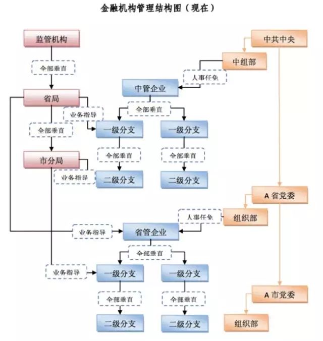 现有中国金融体系人事任免框架是在1998 年之后渐渐形成的。涵盖了两条主线:党务与高管。但在1998年时,这两条线并不区分,由于金融机构尚未创建起当代的企业管理,人事根本上由党委构造部管理。