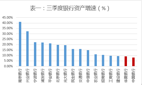 : D- O8 j5 w# H/ c; L! L经济形势不理想,贸易银行已难以复制以往的高增长。从三季报数据来看,贸易银行资产规模仍在增长,但是增幅放缓。四大行的资产增速广泛放缓,除了农业银行(601288.SH),其他三家大型国有银行资产增速均回落到个位数以内,股份制银行中,中原银行(600015.SH)资产增速最痴钝(表一)。