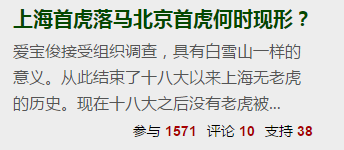 上海首虎刚落,媒体尚在狂欢,乃至有人撰文曰:“上海首虎落马,北京首虎何时现形?”