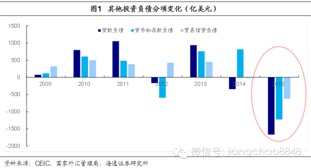 此中贷款(重要为企业对外债务)负债淘汰1667亿美元,钱币和存款(重要为银行对外债务)负债淘汰1226亿美元,商业信贷负债淘汰623亿美元。贷款负债连续6个季度淘汰,钱币和存款负债淘汰会合于15年下半年,淘汰1051亿美元。商业信贷负债整年均为流出。15年也是史上初次出现三大类负债全部大幅淘汰的情况。