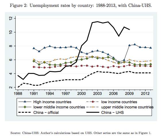 这就有了各人都知道的错误数字:中国的赋闲率不会是4%,那详细是多少?张军领导的课题组追踪了国内东南多个有代表性的省份的赋闲率数据,根据都会住民观察(Urban Household Survey,UHS),在2005年时赋闲率数字很大概已经高达10.7%,这也与其他课题组得到的数据靠近,但随着经济发展,在2007年时降落至7%。在如许一份观察数据后,2015年,有上海大学和美国约翰霍普金斯大学的相助研究发表于National Bureau of Economic Research,基于张军的数据计划了模子推算天下的赋闲率数据,在2002-2009年,匀称赋闲率为10.9%,这是当时各类测算方式的峰值——但依然只是推断而已,样本数量还远远不敷。8 I9 h) l4 Y1 e7 c# _7 R