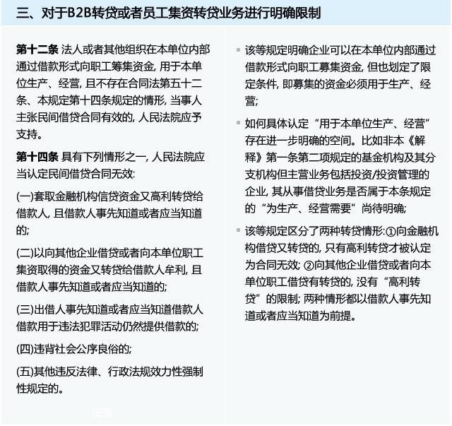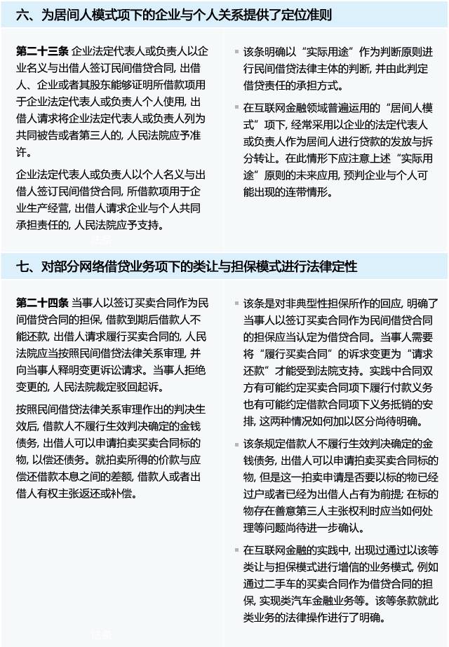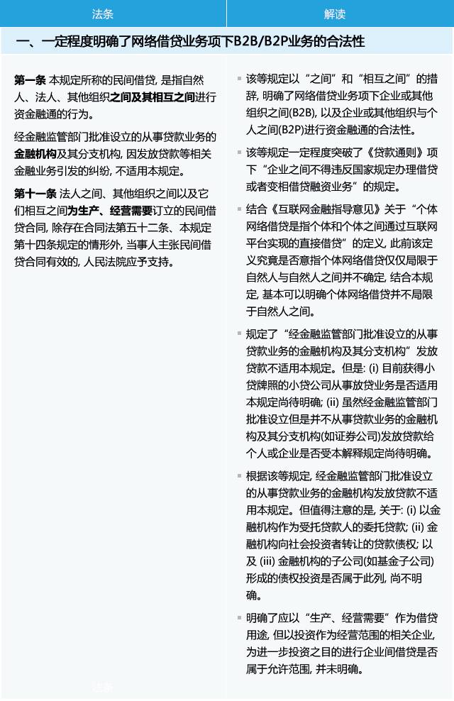 | 2015年8月6日, 最高人民法院发布了《最高人民法院关于审理民间借贷案件实用法律多少题目的规定》(法释〔2015〕18号, 以下简称《借贷表明》)。此次发布的《借贷表明》于2015年6月23日由最高人民法院审判委员会第1655次集会通过, 自2015年9月1日起施行。《借贷表明》与1991年颁布的《最高人民法院关于人民法院审理借贷案件的多少意见》相比有着诸多紧张厘革, 在借贷主体、收效要件、包管责任、借贷利率等方面都有了新的突破。 7 K; l7 J5 ~9 f9 M根据《借贷表明》, 我们梳理了以下值得留意的厘革: