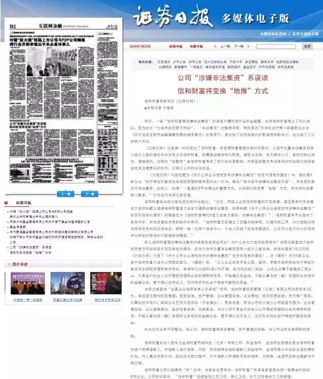 0 u$ [- W2 ]6 o$ V! f信和财产为此担当了《证券日报》的独家专访,称信和财产是因“广告内容中涉嫌非法集资内容”而被告示,并非真的是企业涉及非法集资。某些媒体恶意诽谤,哗众取宠,为博取点击率,恶意篡改标题,如许的举动有失媒体公允、客观的职业规范、道德准则。信和财产相干负责人还表现,现实上线下与线上相联合不停是互联网金融平台展业的紧张方式,以后将更好地发挥互联网金融线上模式,有效联合线下模式,符合相干羁系部门要求。