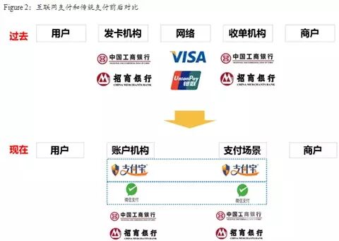 付出行业的变革同样可以用互联网金融的根本框架来表明。传统付生财产链分工非常明确,卡构造网络负责银行卡之间的清结算。发卡机构、收单机构机构各司其责,为用户和商户服务。但是互联网期间,发卡和收单机构都背景化了。 / a8 N0 b6 u5 x7 S