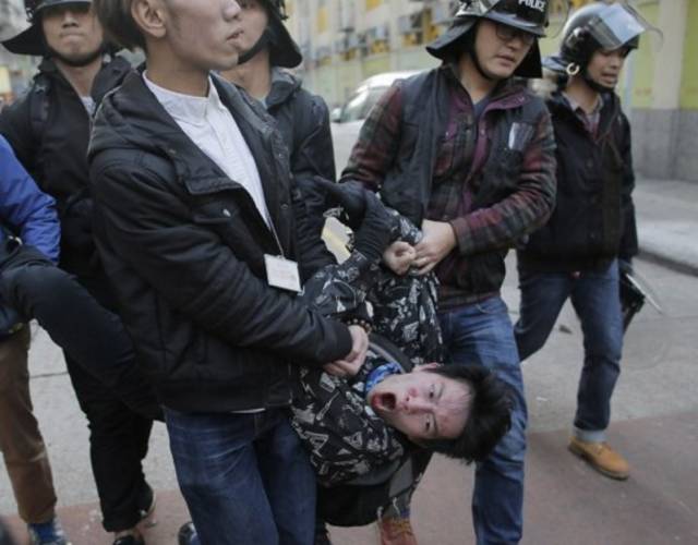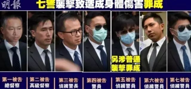2月17日,香港7名警员因殴打违法“占中”者曾健超而被地区法院判刑2年。