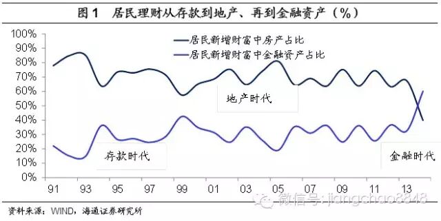 , O" S3 B& K! v; y( M' o住民理财:从存款、房地产到金融资产。回首汗青,90年代我国住民财产管理紧张靠高利率的存款,00年后转向房地产。而14年住民新增财产的40%来自于房地产、17%来自于银行理财、16%来自于存款,12%来自于股票,其他还包罗信托、基金、保险等,住民财产设置多元化的期间已经到临,对金融资产的需求正在急剧上升。