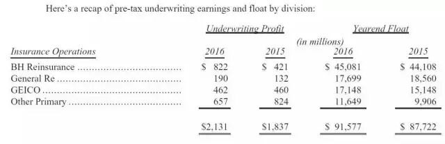 ( J$ F6 P1 N7 r$ X9 y- h- j36、别的,我们的p/c公司拥有良好的保险履历汗青业绩,一连14年红利,这一时期税前收益累计凌驾280亿美元。这项纪录不是偶然:有规律性的风险评估是我们保险司理人逐日的关留意心。他们知道只管浮存金很有代价,但浮存金的代价可以被很挫的保险业务拖垮。