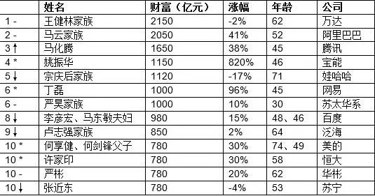 2 r7 `) W9 n5 i2 U值得注意的是,客岁排在200开外的姚振华,本年猛升至第四位。这位因万科股权之争而备受关注的潮汕大佬,一年之间,产业翻了9倍到达1150亿元,这也让姚振华成为榜单中的最大黑马。胡润表现:“姚振华产业均匀一周涨了20个亿。”
