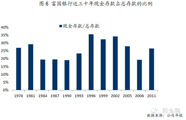 3 X# Y" i& D& r) C但是富国银行在利率市场化以后,积极拓展零售业务,通过ATM机的广泛使用和服务质量的提升,迎来了社区银行的发达发展,维持住了较高的现金存款占比。9 @7 ]8 L0 \* F1 W$ X( p
