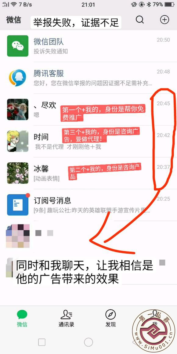 犯人共"三名"(三个微信,可能一个人): 身份分别是:①推广(免费或低价) ②客户(咨询产品,不买) ③微商/客户(说通过网页添加,要做◤代理◥)7 D2 s3 r9 k9 ?& v