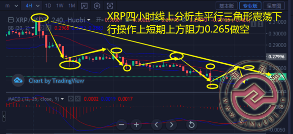 日线上XRP瑞波币获得下方0.25整数关口支撑拉伸,日线上周六行情也是走一个小反弹上探行情,日线上K线运行在布林带中轨下方,日线上只要短期XRP不跌破0.252之前暂时XRP还是有机会拉伸上涨。四小时前两个交易日中维持区间0.25-0.265,四小时线下午也是在低点0.2588上涨到高点0.26441,走势上目前佳颖个人认为肯定目前XRP下方0.252支撑看区间0.252-0.268会有一波行情震荡。晚间操作上在高点0.265一线先布局一波空单,再在下方0.255低多做反弹。