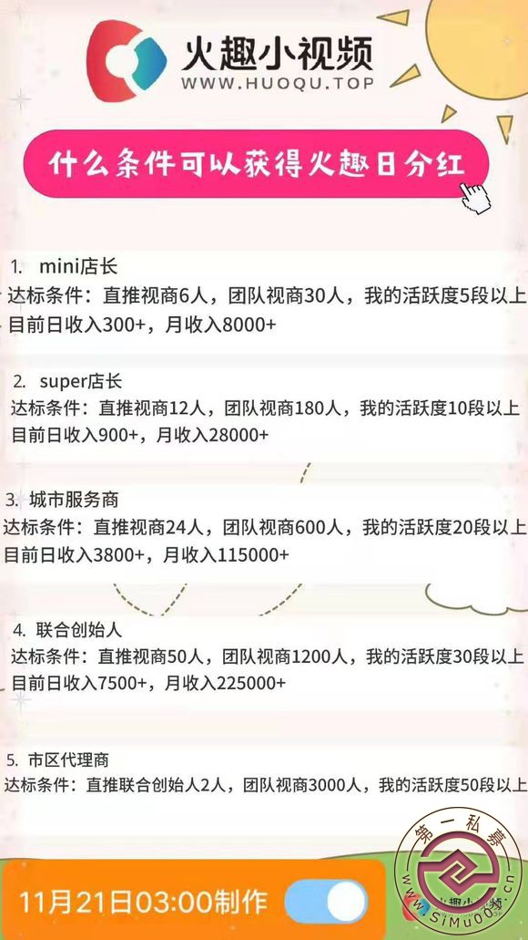 . S2 J3 A) w1 ]4 }5G火趣小视频是视商时代的风向标,未来趋势项目全网第一,最正规合法项目!