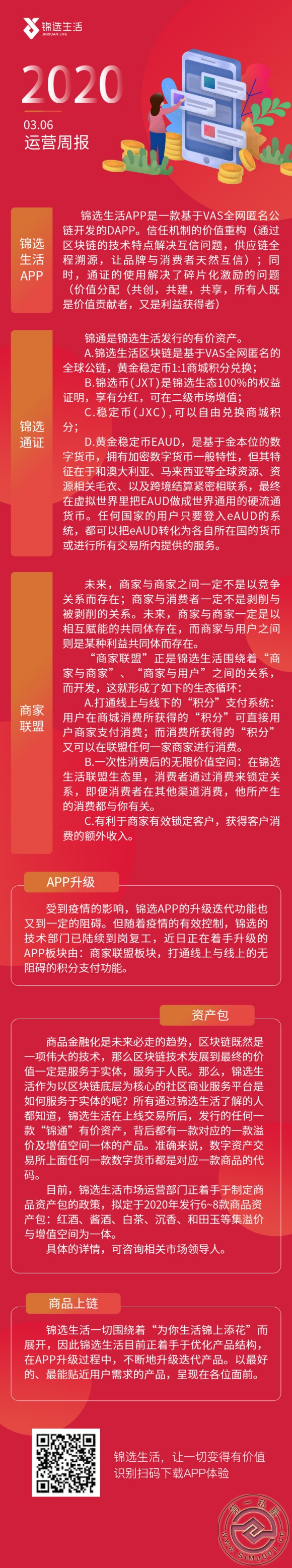) u& i% @/ q# S! J' S 锦选生活为你锦选3月6日运营周报(商家联盟、积分、平台升级、资产包、商品上链):( e+ X$ ^: c$ m4 G