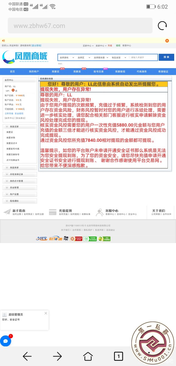#网络诈骗##防范电信网络诈骗##打击网络诈骗# 2020年5月7日下午3点左右被骗2020元,玩游戏的过程中公屏上有充值的qq当时贪小便宜就入了骗子的骗局,骗子会给个网站在网站里交易,首先在网站注册账号,刚开始充30元,客服告诉我得充380开通自动发货充完会反给我,不交就不给发货。380到账之后我提现系统提示银行信息填错账户冻结,解冻需要1580,智商低下的我又交了,我账户上变成1960然后我又提现这回显示提现次数频繁需要下载安全证书还得5000多,我觉得肯定是后台客服操作的我就抱着试试的态度充了又30看看能不能给我解开,充完我也醒悟了就报警了做了笔录,民警告诉我网络诈骗只能防范很难追回。我进了一个群里面200多人跟我同样骗数被骗金额总共超过200万: A/ ~4 ?5 F# H1 n- V4 P" G
