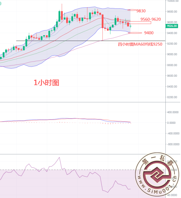 操作建议:建议9560-9620附近轻仓空单进场,9800-9850附近正常进场空单,目标9450-9350-9250-9200,破位继续持有;