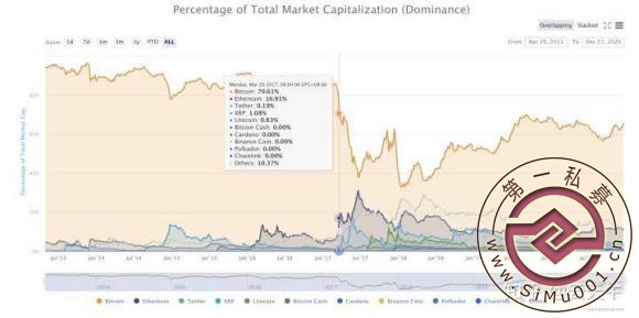 , Z s# ^/ C: y k. v根据CoinMarketCap数据线,比特币市值在整个加密货币市值中的占比已经突破70%,创下了2017年3月以来的新高。& m" p$ u: ^$ I/ u' h! u3 f
