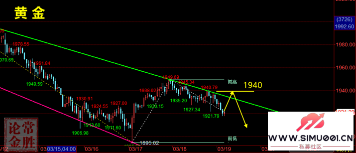多头周五白天虽然强势,但是空头如当头一棒,直接绝杀,此种走势反弹就是空,下周依旧是以1940为防守,继续布局空单,空头必将继续攻城拔寨,将价格打压至1900下方,美联储加息刚落地,再次出现加息预期,消息面利空黄金,下周空继续数钱,一万年太久,只争朝夕。