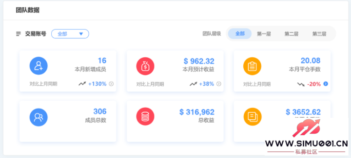 创富团队整合后台数据,通过分类、筛选、排序等形式,方便代理清晰查询个人、及团队成员的交易情况,为用户提升效率、节省时间。