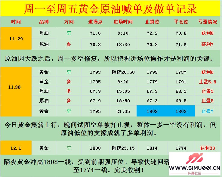 周二行情回顾:黄金隔夜空单因时间的影响之下选择过夜持有,在早间的整理过程中,空单获利选择出局!随后根据技术面的支撑和信号,反手在1785一线布局多单,最终黄金行情反弹至1791一线,多单继续获利。那么在漫长的晚间,黄金延续上行触碰首次压力位1795附近,我们空单再次进场,遗憾的是黄金行情的延续性较强,小幅的整理后再次打出新高。最高反弹至1808一线,空单止损出局!那么这样的止损并没有打消我们做空的思路。因,大趋势是空头,所以一次的失败并不可怕,可怕的是信心没有了,同时也会错过挽回的机会。所以当行情再次冲高1808我们空单果断进场,止损1814一线。当行情小级别上下浮动后,行情快速下跌,空单在获利的前提下,我们选择继续持有对的单子,直到利润空间加大我们合理选择出局!最终空单利润高达33美金。" ]& {; U3 S& c& n9 G8 A6 ^