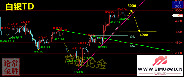 白银TD日间策略:触及5000空,止损5050,目标看4900,破位看4850 + e- h2 U. z/ w( Z- Q$ K# l& F