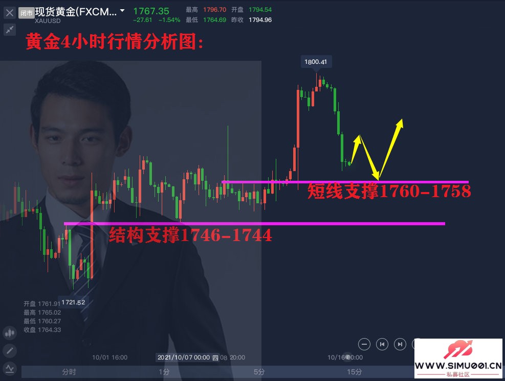 黄金日线收阴,对短线结构有所改变,但技术上又不支持继续回撤,4小时图以及日线图都有不同程度的超卖,故下周对于黄金还是先看调整,需要对隔夜行情进行消化和确认,那么下方可关注前期小高点1760附近回踩测试,这也是目前60日线附近支撑,如果行情回撤到其下方运行,那么技术结构重心下移,行情依然有回归弱势的可能,从隔夜行情异常的表现来看,短期行情变脸回吐涨幅的这种可能性也不能完全排除。如果行情跌回1760之下,则下方再重点关注前期行情震荡区间低点1746附近测试,此位也是前期低位,触底反弹回踩的结构支撑位,所以下周一建议关注下方两个重点位置,做多为主,反弹做空为辅。' u# E0 q8 \; K- G, O