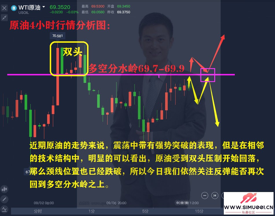 : v5 w. d2 B# ] 对于4小时拉动布林道收口进入震荡,昨日从底轨反抽至上轨局部震荡。4小时的结构暂时进入箱体区间拉锯震荡,反复且单边延续不足,均线指标也是凌乱发散,通常在选择方向之前会进入一段时间的拉锯震荡期。目前就是震荡拉锯期。短线更加考验进场点位和持仓耐心。 综上而言,今日操作思路上博旺建议以反弹做空为主,回踩做多为辅,上方短期关注69.7-69.9一线压制,其次关注70.5-70.6一线相邻,新高,双头阻力,下方短期关注67.2.2-67.0一线支撑。