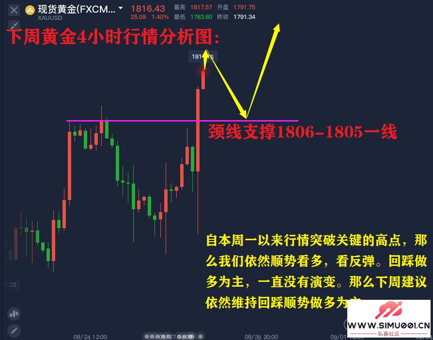 0 M u6 [: a( R( I& h4 T# E 解套战略一:空单在1805-1803下方的空单,那么此单大概是由于周五鲍威尔的发言引起,较大的波幅渐渐的拉升,导致在日内高点附近布局空单的朋侪从而被套,终极行情强势走高。那么对于1805-1803一线的空单,给出的发起方案是,发起周一行情在1818-1820一线仍旧是选择加仓法,拉均价,当行情回踩1810-1808一线,险些可以到达解套效果。但不绝要注意,加仓空单止损肯定带,以防行情强势继承走高。那么若行情周一继承周强空单止损,继承锁仓,关注1830-1833大周期压力位,在选择试空。