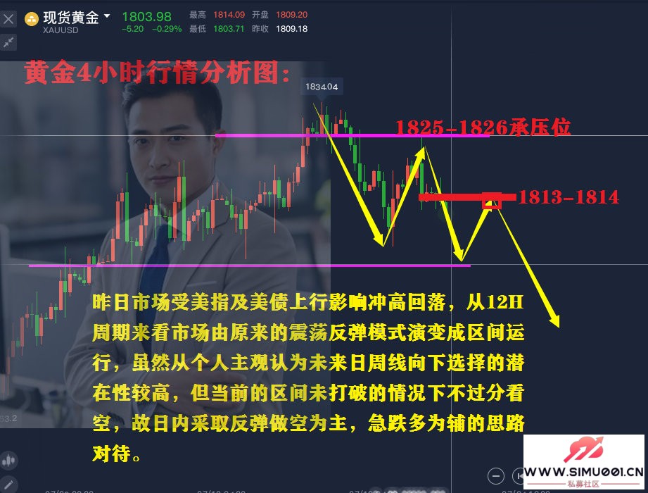综合而言:周一黄金操纵思绪上李鸿涛发起,反弹做空为主,回踩最多为辅,上方关注1813-1814一线阻力,下方关注1795-1794一线支持。
