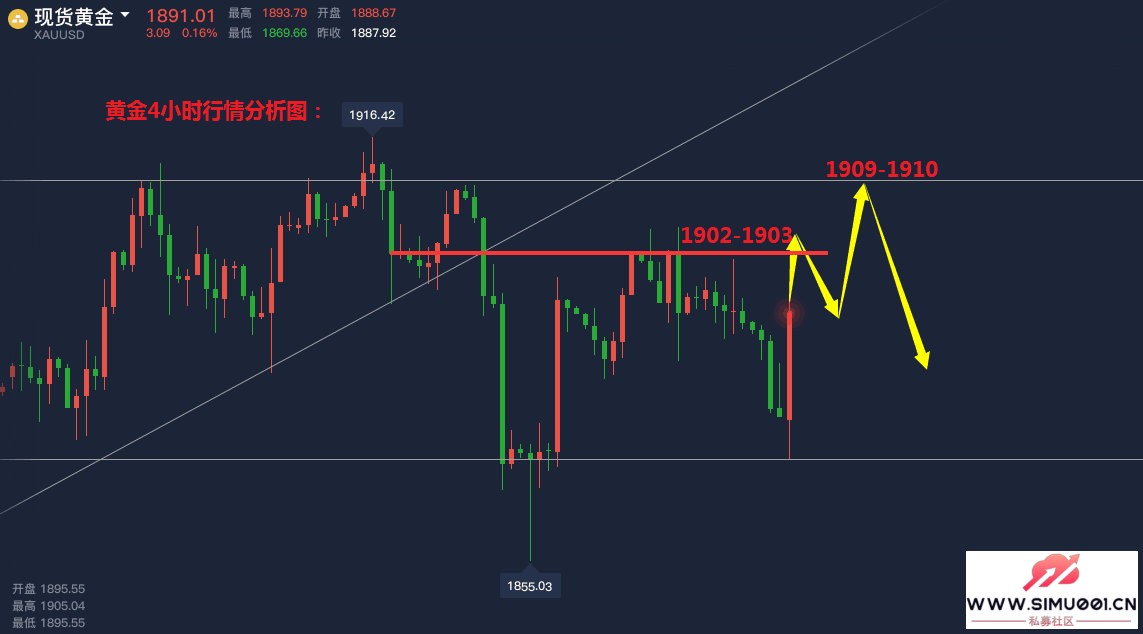 综合来看:本日黄金短线利用思绪上博旺个人发起以反弹做空为主,回踩做空为辅,上方短期重点关注1903阻力,强势反弹关注1909-1910附近的弃取做空,那么下方关注1881-1880一线支持。