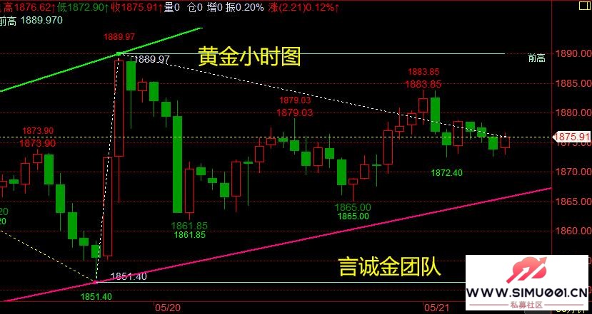 2 X3 @7 c0 L1 L3 R/ B 周四(5月20日)黄金亚欧盘下探1865/1863地域后,美盘探底回升,站上1880美元,但随后回落至此关口下方小幅震荡,团体上保持高位震荡走势,受美元和美国国债收益率下滑推动,因投资者对美联储大概缩减经济支持步伐的暗示不予剖析。 黄金消息面分析:周五(5月21日)开盘现货黄金收报1877.21美元/盎司,上涨7.59美元或0.41%,盘中最高触及1883.88美元/盎司,最低触及1863.75美元/盎司。近期受益于股市疲软、通胀担心以及加密钱币暴跌的影响,黄金一度匀积至四个月高位1889.84美元。不外在现货黄金在美联储公布纪要之后大受打击,跌破1870美元。9 F) o. Z' O3 s8 H6 \4 M