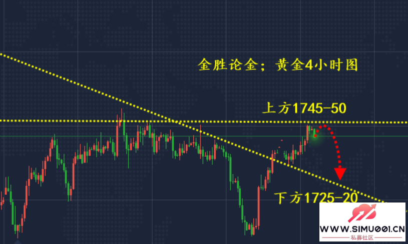 , B ~% X/ Z- f4 F- A黄金从四小时来看,当下代价上线遇阻后回落,出现这种形态,预期会出现两种情况,一是小幅回落直接拉升,形成冲高回落,二是金价颠末拉升,对于均线来说直接大幅拉升时间不敷,至少必要修正二到三根K线才气继续睁开一次上行后正式走日图简直认,以是对于本周方向于修正,以时间来调换空间修复指标的超买,以是单阳上行不可骇,可否连续是关键。从多周期来量化来看,日线上方重点压抑在1740-1745这里,而四小时图预期会反复二到三K线,从横向到纵向来看,代价回抽太深就直接影响上升的连续性,以是对于预期回落1715就是比力理想的多单入场点。综合来看,黄金本日利用思绪上金胜发起以回调做多为主,反弹高空为辅,上方重点关注1740-1745一线阻力,下方短期重点关注1715-1720一线支持。7 c: _% Y' l% \6 k