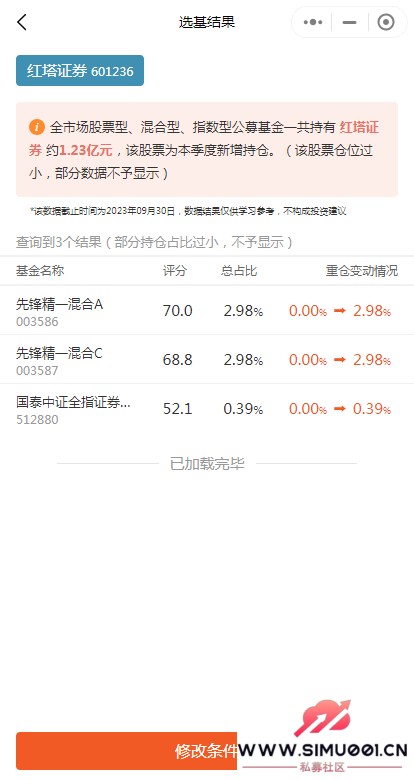 午后大金融股走高,首创证券、红塔证券等涨停;招商银行、宁波银行、齐鲁银行等多股上涨超过5%。根据机智查牛股选基数据显示,截至去年三季度末全市场股票型、混合型、指数型公募基金一共持有首创证券约2.44亿元,全市场股票型、混合型、指数型公募基金一共持有红塔证券约1.23亿元,全市场股票型、混合型、指数型公募基金一共持有招商银行约394.79亿元,全市场股票型、混合型、指数型公募基金一共持有宁波银行约171.97亿元,全市场股票型、混合型、指数型公募基金一共持有齐鲁银行约1.21亿元。