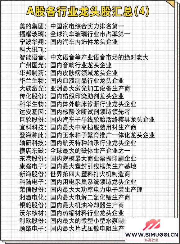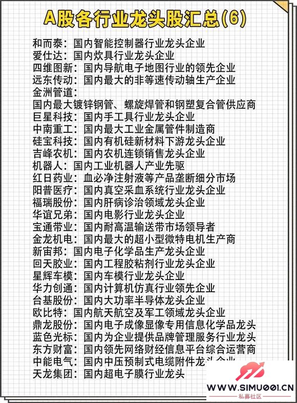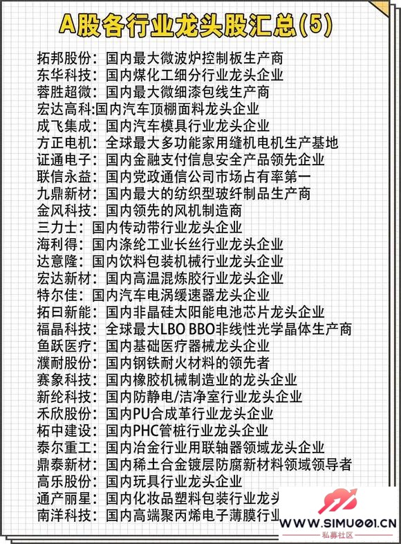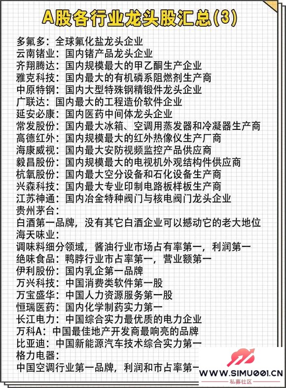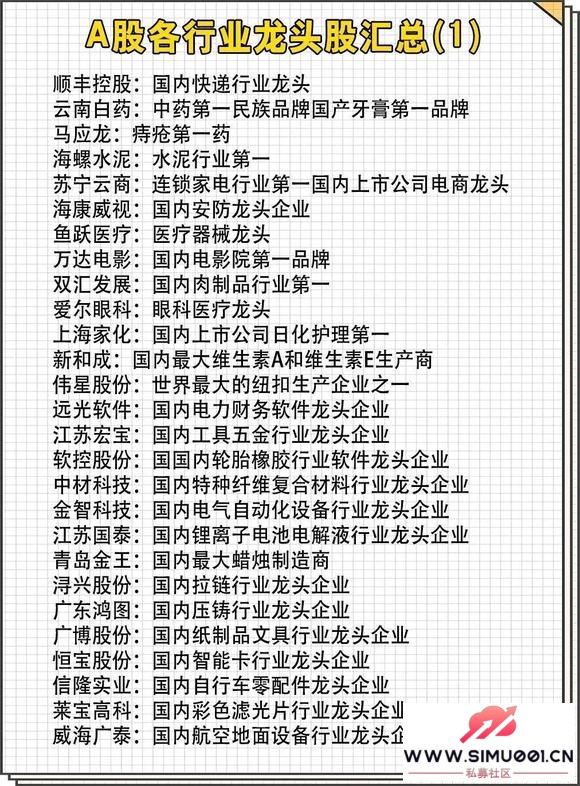 1 z" f' Q4 `5 D, v5 Q9 A为了方便保存和理解,我把各大行业龙头整理成立图片,展现在下方!如果大家觉得有用,记得点赞加关注收藏!
