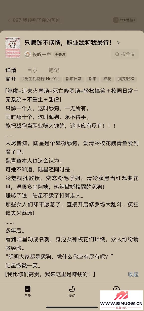. @, x; B3 a' b j: [男主:陆星,经典孤儿开局,高三学生,职业舔狗。情商高,职业素养高。到目前为止,男主都是只谈钱,不谈情,只要钱到位,什么事都好说,对雇主忍耐度极高。/ l3 n( K" B+ J$ U3 N% D. n