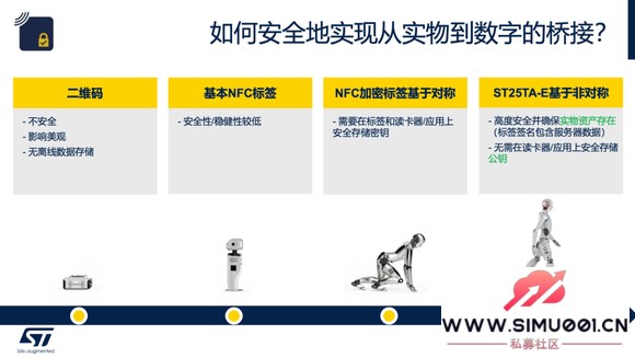 2 I3 g* a0 S J! j而ST25TA-E器件基于非对称加密架构,具有高度安全性并可确保实物资产存在(标签签名包含服务器数据),无需在读卡器/应用上安全存储公钥。3 I! I1 q5 c) m; g |# A