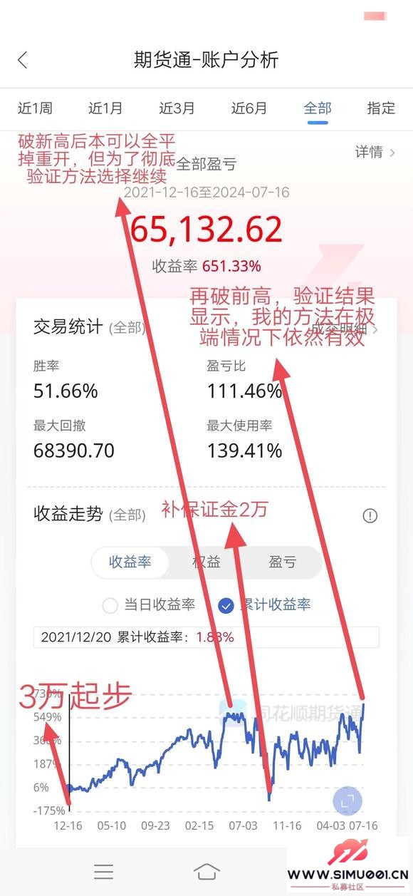 0 K7 v/ H, ~& N: W+ u1 D中间的那个大回撤是极限测试,其实去年这个时候已经到12万了,当时为了深度测试方法的有效性,没有平仓重开而是在逆势中继续操作。今日收益又破新高,证明我的方法在任何条件下都有效,是当之无愧的稳赚不赔必胜法。