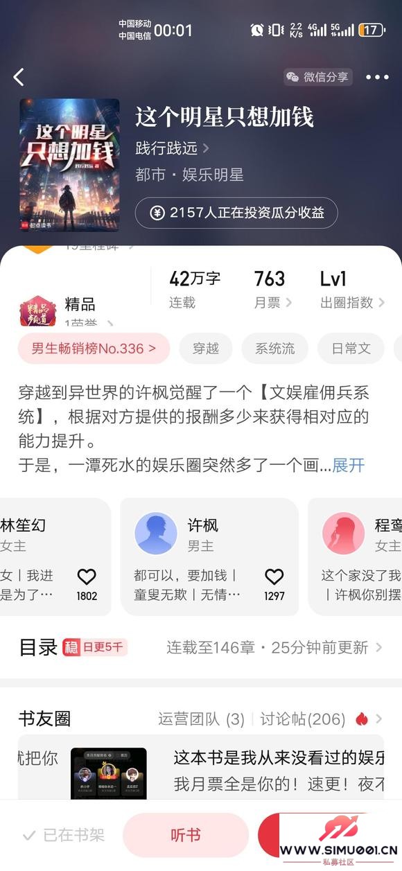 本来帖主看这书感觉还不错,标签是两个女主,走势也是两个女主的暧昧剧情,架空文娱,由于看见了炒股内容(主角心理描写说女一段位低,这样差着女二呢),然后章说发现有人说看男主怎么选,帖主就开始怀疑这作者这样写的目的了。; D- t: |$ Q7 H, Q+ D2 q