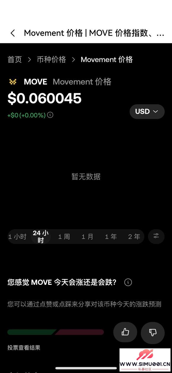 MOVE 币,全称 MarketMove,是一个新兴的加密货币项目。截至 2024 年 12 月 6 日 7 时 54 分,其价格约为 0.000021 元人民币(≈0.0000029 美元),24 小时交易量达到了 2580.9 美元。在过去 24 小时内,MOVE 币涨幅达到了 3.74%,显示出强劲的市场活力。MOVE 币的流通总量已经达到了 2154.59 亿枚,而发行总量则为 10000 亿枚,目前的流通率为 21.55%。需要注意的是,加密货币市场具有高度的风险性和波动性。MOVE 币的价格波动幅度较大,其历史最高价曾达到 0.1192381 美元,而最低价仅为 0.0000021175753 美元。对于投资者来说,这既是机会也是风险。在投资加密货币之前,建议充分了解相关的市场和投资知识,并根据自己的风险承受能力和投资目标做出谨慎的决策。同时,要注意防范诈骗和安全风险,选择安全可靠的交易平台进行操作。另外,Move 语言公链 Movement Network 基金会也宣布了其主网 Beta 已正式上线,此前Coinbase和 OKX 已宣布将上线 Movement 代币 MOVE,Bitget 盘前交易显示当前 MOVE 价格为 0.62美元左右,FDV(完全稀释估值)62 亿美元。不同平台上的 MOVE 币价格可能会有所差异,且其价格随时可能发生变化。MOVE 币具有一些特征,例如其应用程序是 BSC 上的一站式解决方案,利用人工智能让用户找到新的有前途的代币,深入审核现有代币或预售,并通过在 PancakeSwap 和其他交易所下限价或止损订单来出售它们;它还采用了通缩机制,最大供应量为 1 万亿枚,其中 5%会被销毁,买税和卖税的具体比例也有所规定。Movement Network 是一个社区优先的区块链,通过 Move 语言、即时最终确定、即时原生接入海量流动性和模组化客制化提供卓越的 TPS 性能。加密货币市场较为复杂,投资决策应该基于充分的研究和了解,同时要时刻关注市场动态和相关政策法规的变化。以上内容仅供参考,不构成任何投资建议。) Y- ]4 W/ i: H8 K1 j9 r; r
